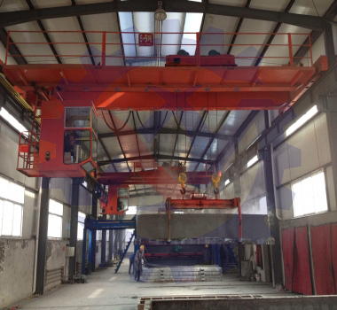 是橋架兩端通過(guò)運(yùn)行裝置直接支撐在高架軌道上的橋架型起重機(jī)。它由橋架(包括主梁和端梁)、起重小車、大車運(yùn)行機(jī)構(gòu)和電氣控制系統(tǒng)等部分組成。起重小車上裝有起升機(jī)構(gòu)和小車運(yùn)行機(jī)構(gòu)在橋架主梁上沿小車軌道橫向運(yùn)行;起重機(jī)沿廠房或露天貨場(chǎng)的高架軌道縱向運(yùn)行,其掛梁方向分為與主梁平行和與主梁垂直兩種,并在掛梁下方裝有電磁吸盤,通過(guò)電磁吸盤完成物料搬運(yùn)工作。